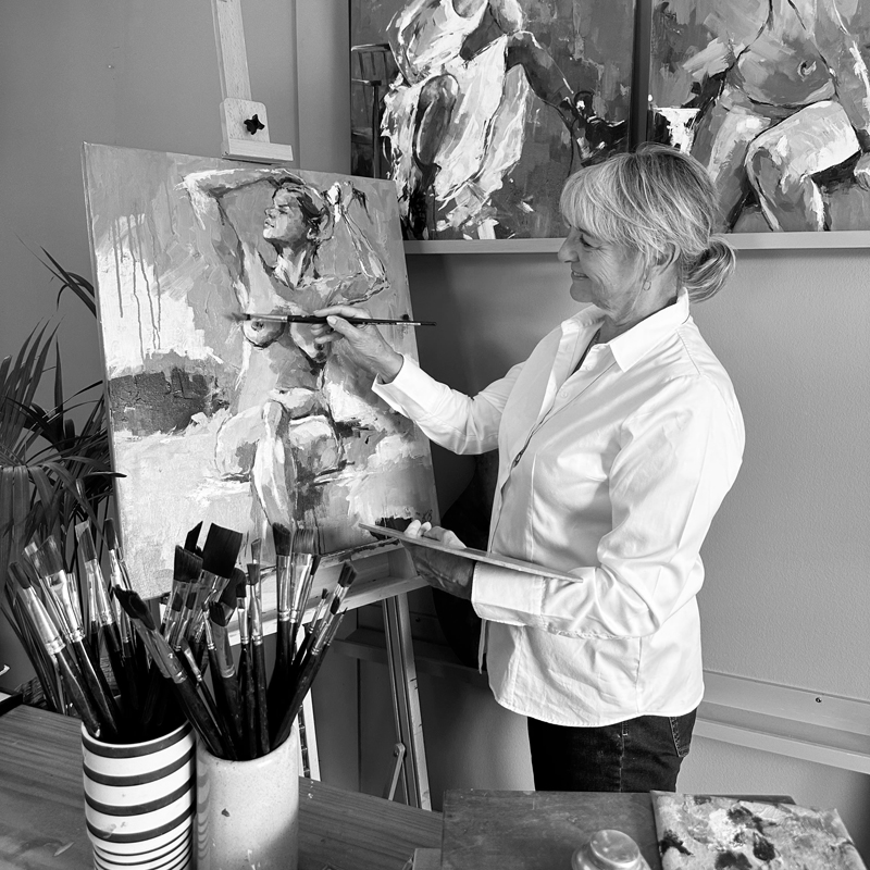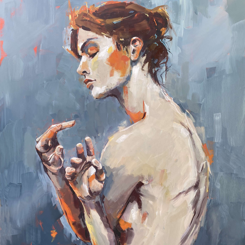 -Jeg arbejder gerne længe og tålmodigt med et værk og stræber efter at gengive den rigtige stemning. For at udfordre mig selv og min skolede teknik, søger jeg mod det rå og uperfekte, da maleriet helst ikke skal ende med at blive alt for pænt og nydeligt.